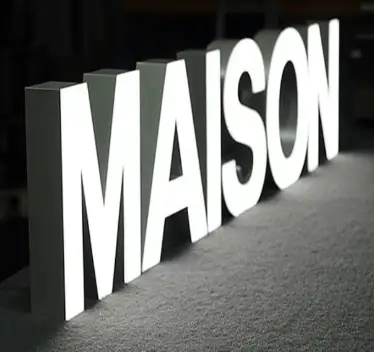 Illuminated signboard with letters on the backThis type of lighting comes from the back of the letters. Soft, diffuse lighting adds a sense of mystery and sophistication to the signage.